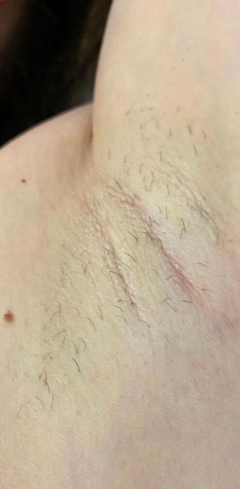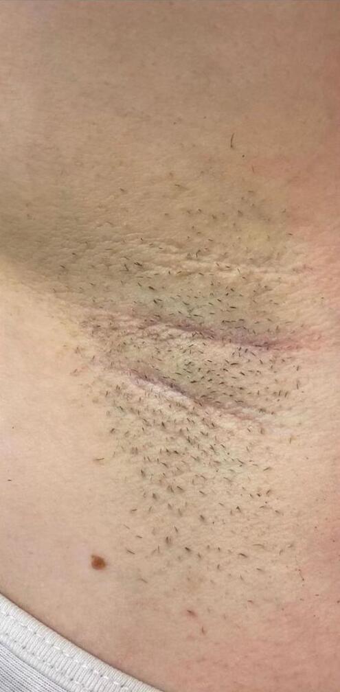 I mycket sällsynta fall kan brännskador uppstå. Detta ser ut som små sår eller blåsor och kan bero på att man är väldigt känslig mot lasern ljus eller att man kanske är något brunare än vanligt, tex efter sommaren. Detta läker normalt ut jättefint, men det kan ta några månader. Utsätt ej detta område för solljus och använd alltid solskydd spf 50. Klia ej på området, då kan en infektion uppstå.